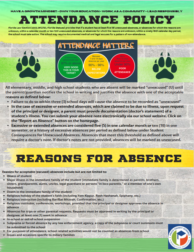 Cypress Creek High School, an A-rated school in Wesley Chapel, Florida, serves about 2,000 students in grades 9–12. Opened in 2017 as a combined Middle-High school to ease overcrowding, it became a standalone high school in 2019 after the completion of Cypress Creek Middle School. Our first graduating class was in 2019. CCHS offers three academies—Business, Criminal Justice, and Engineering—and a recognized magnet program, the Cypress Creek Conservatory for the Arts (CCCA), with pathways in visual and performing arts such as band, dance, theater, and digital art. Dedicated to academic excellence and innovation, CCHS provides a safe, supportive environment that prepares students for success in college, careers, and life.